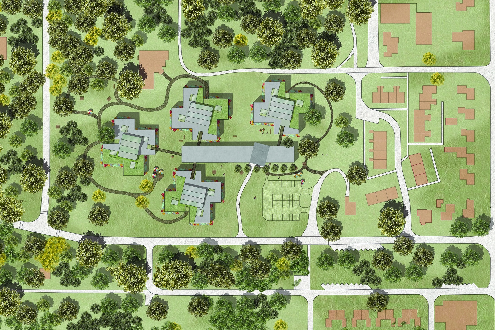 In opdracht van de Hegeman Groep (Nijverdal), heeft MODUS een huisvestingsvisie en een voorlopig ontwerp gemaakt en gepresenteerd. Hierin zijn de wensen om een aanpasbaar en duurzaam gebouw te ontwikkelen meegenomen. De vier gescheiden paviljoens zijn afzonderlijk te realiseren, uit te breiden en eventueel weer af te stoten. Deze paviljoens worden met het hoofdgebouw verbonden door lange gangen, die tevens toegang geven tot de binnentuinen en patio’s. Omdat de bewoners veelal binnen het gebouw verblijven, waar structuur en regelmatig onderdeel zijn van de zorg, is gekozen om zowel het verblijven als het verplaatsen tussen de verschillende ontmoetingsruimten als centraal thema in het ontwerp mee te nemen.