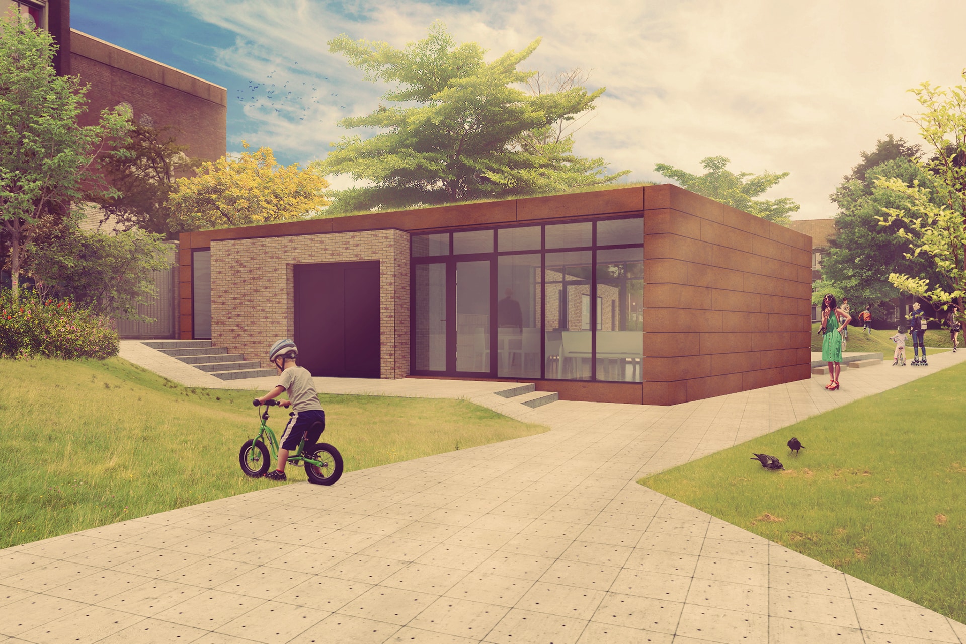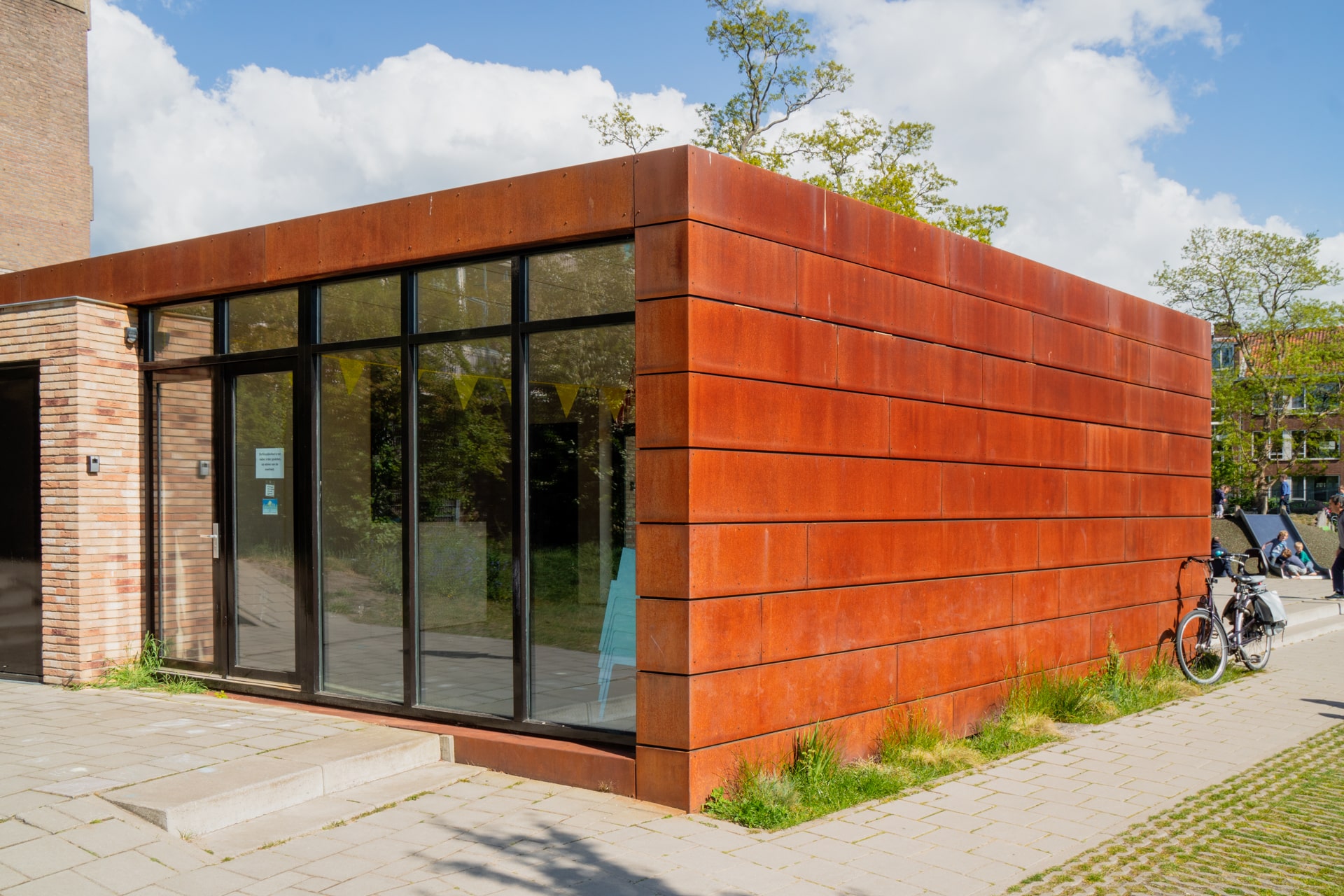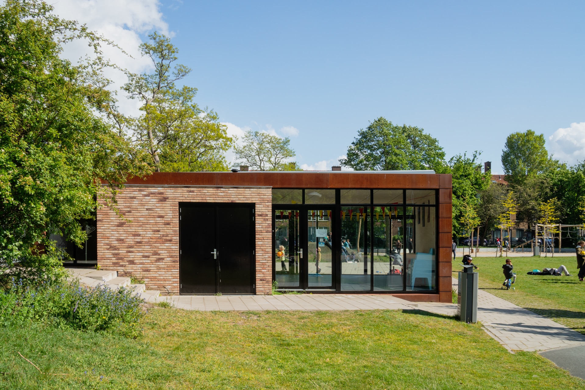 - Oudere kinderen spelen op het speelveld, of maken gebruik van het recentelijk geplaatste kasteel